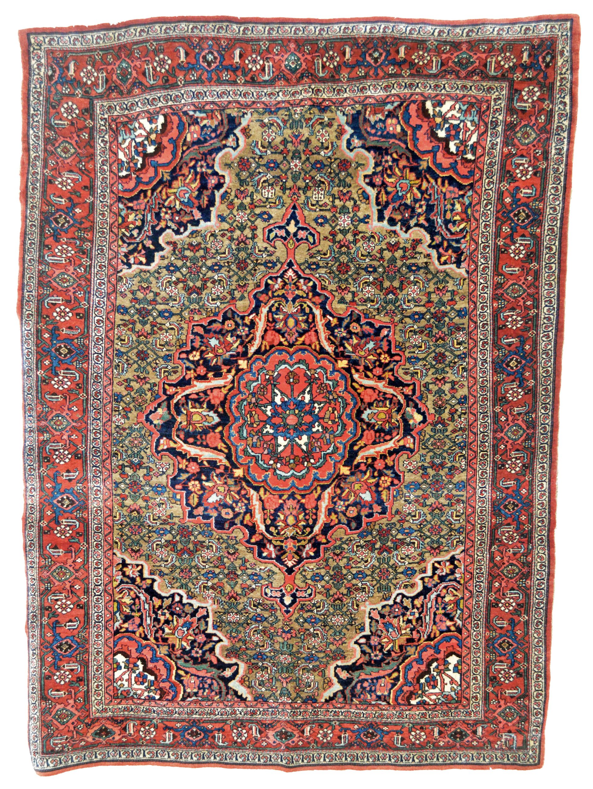 9 x 12.3 An Exceptional “Calyx” Design Antique Bidjar Carpet, Circa 1900